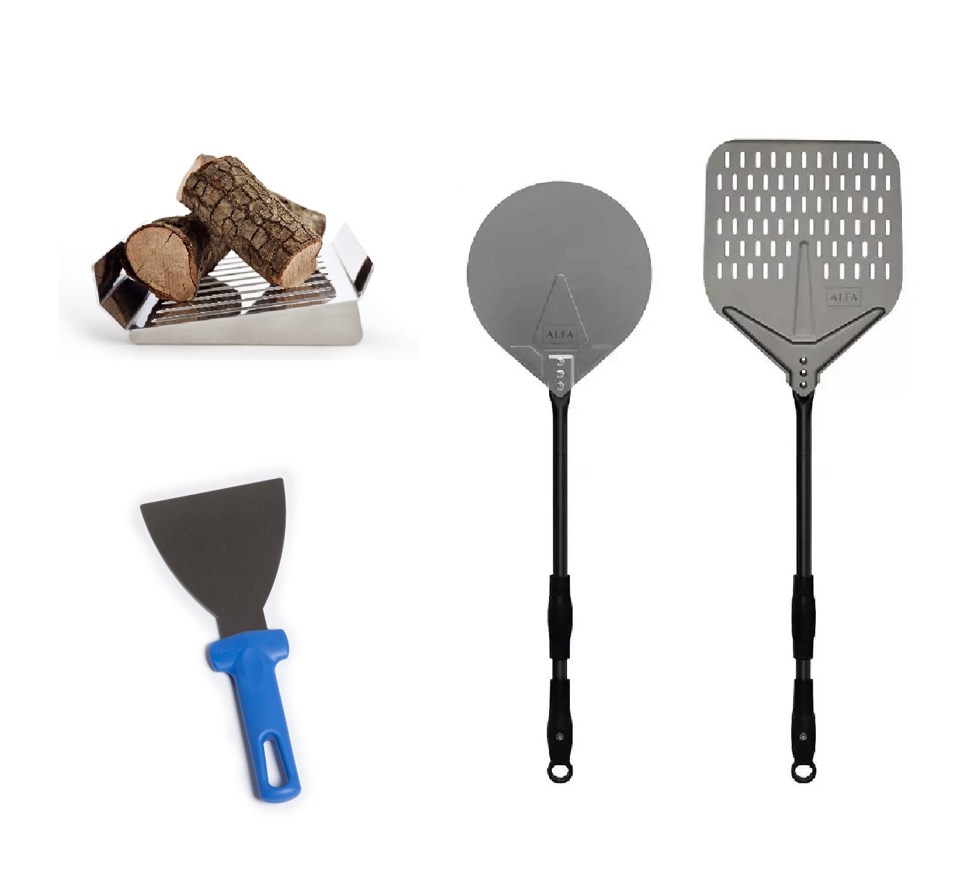 Alfa Forni bietet Ihnen eine breite Palette an hochwertigem Zubehör für Pizzaöfen an, um das Backen von Pizza noch einfacher und angenehmer zu machen. Ob Hybrid Kit Set, Holzhalter, Arbeitstische, Schutzhüllen oder Unterbauten, jeder findet hier das Passende.