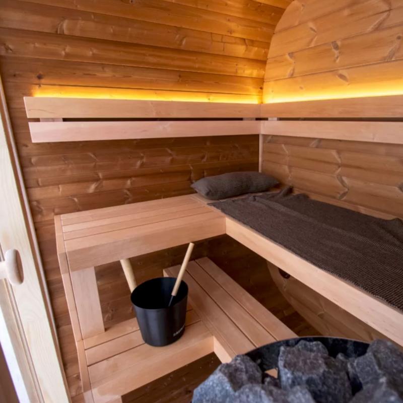 Schon beim Öffnen der Tür umfängt Sie der feine Duft ausgewählter Hölzer. Innen offenbart die Dice Sauna ihre ganze Magie: warm, klar und bis ins kleinste Detail durchdacht. Die ergonomisch geformten Bänke laden zum entspannten Sitzen oder Liegen ein, während das sanfte Licht eine behagliche, beruhigende Atmosphäre schafft. Das Holz ist nicht nur langlebig, sondern auch hautfreundlich und somit ein natürlicher Begleiter für Ihr Wohlbefinden.